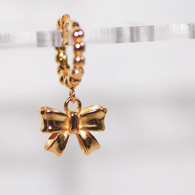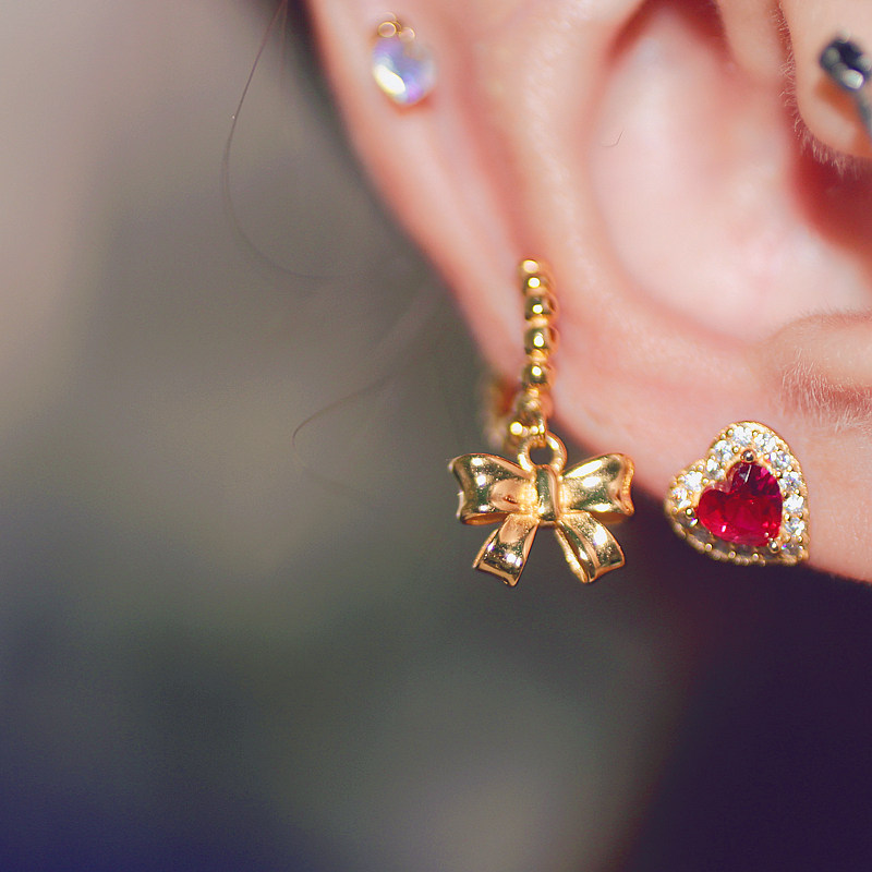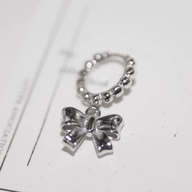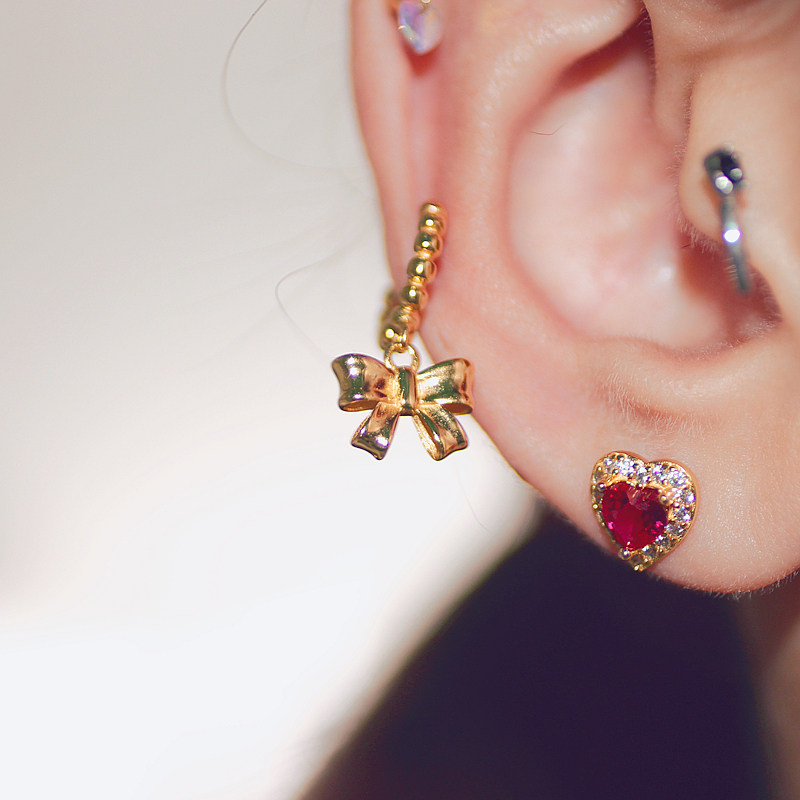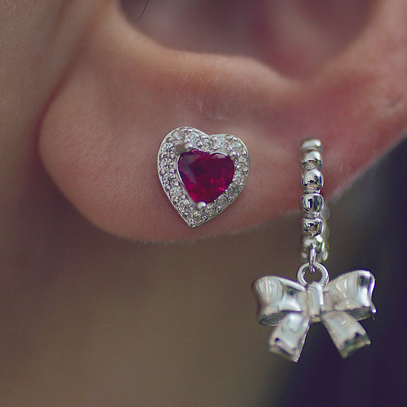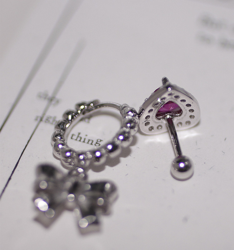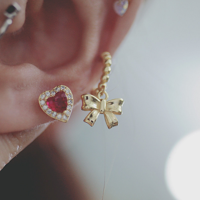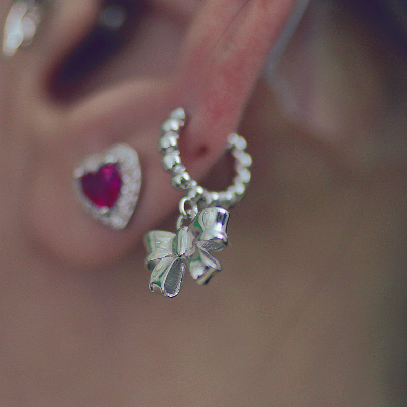 Sterling Silver Sweet Heart Bow Cartilage Stud Earring, French Romantic Jewelry