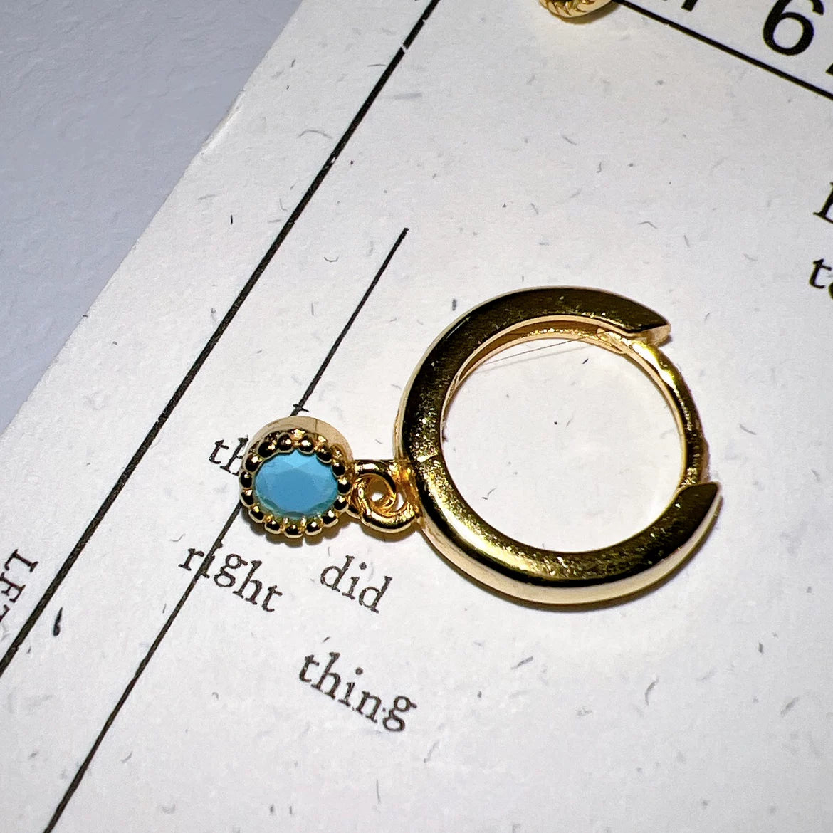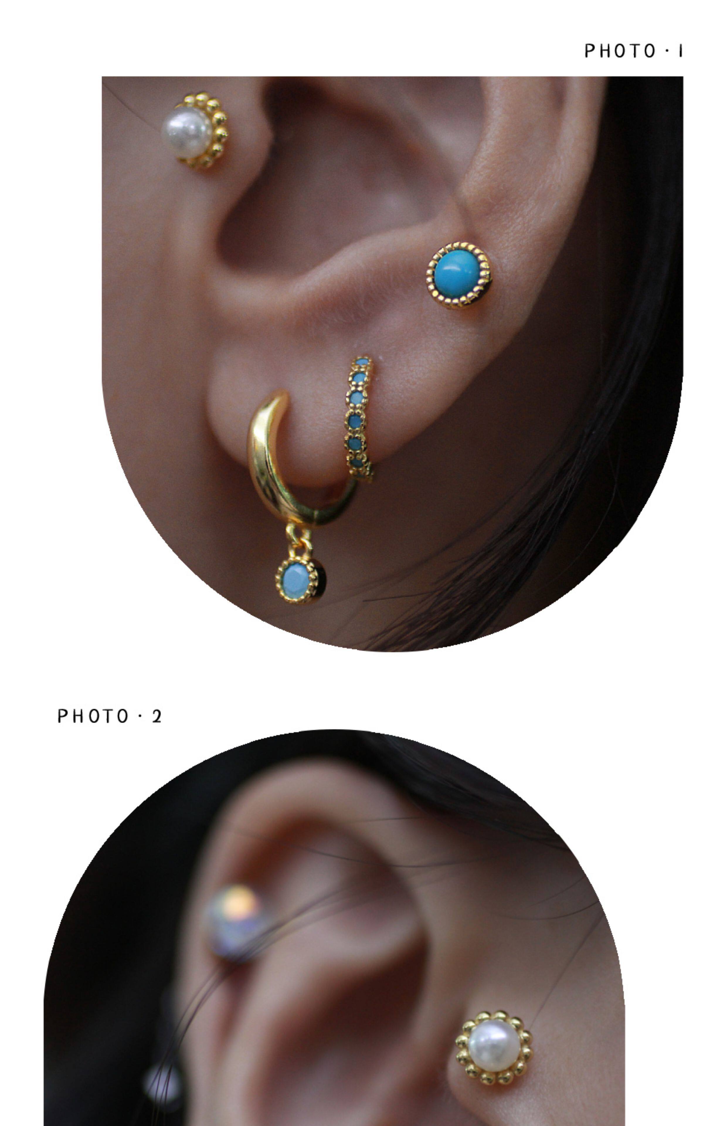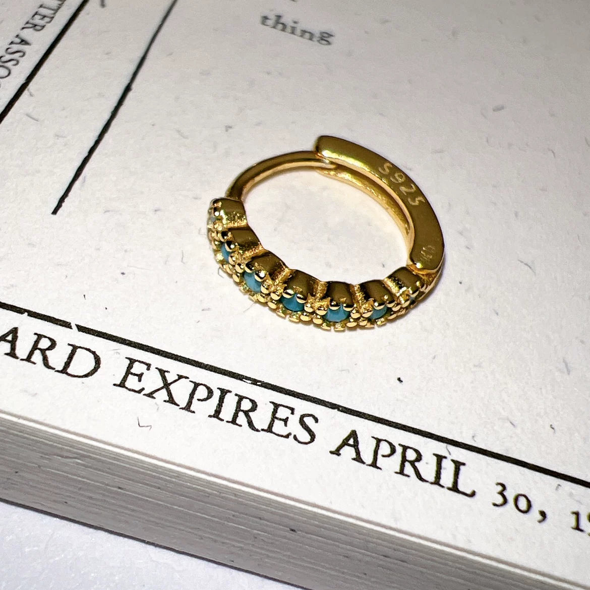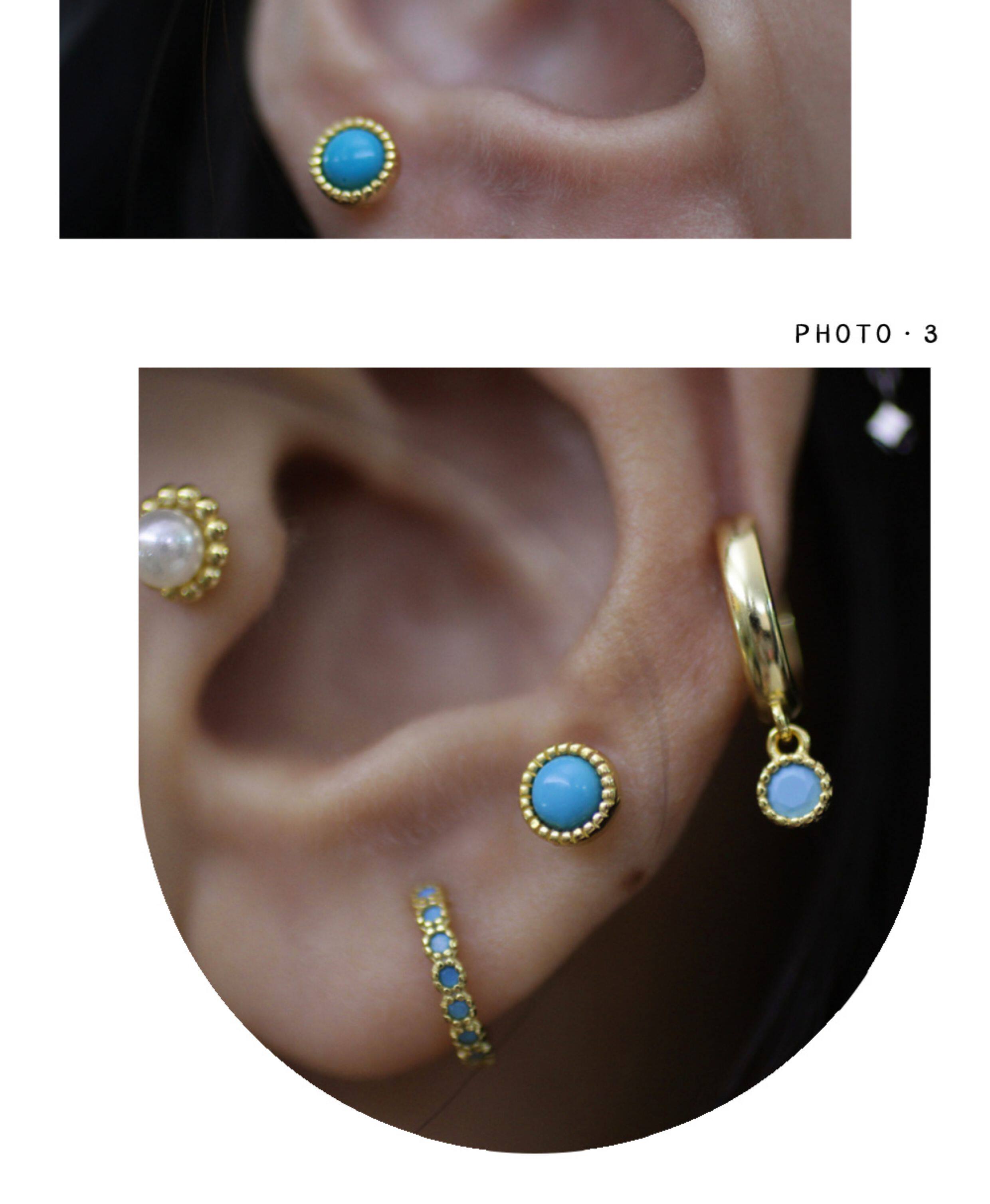 Sterling Silver Turquoise Style Circle Cartilage Stud Earring, Vintage European Jewelry