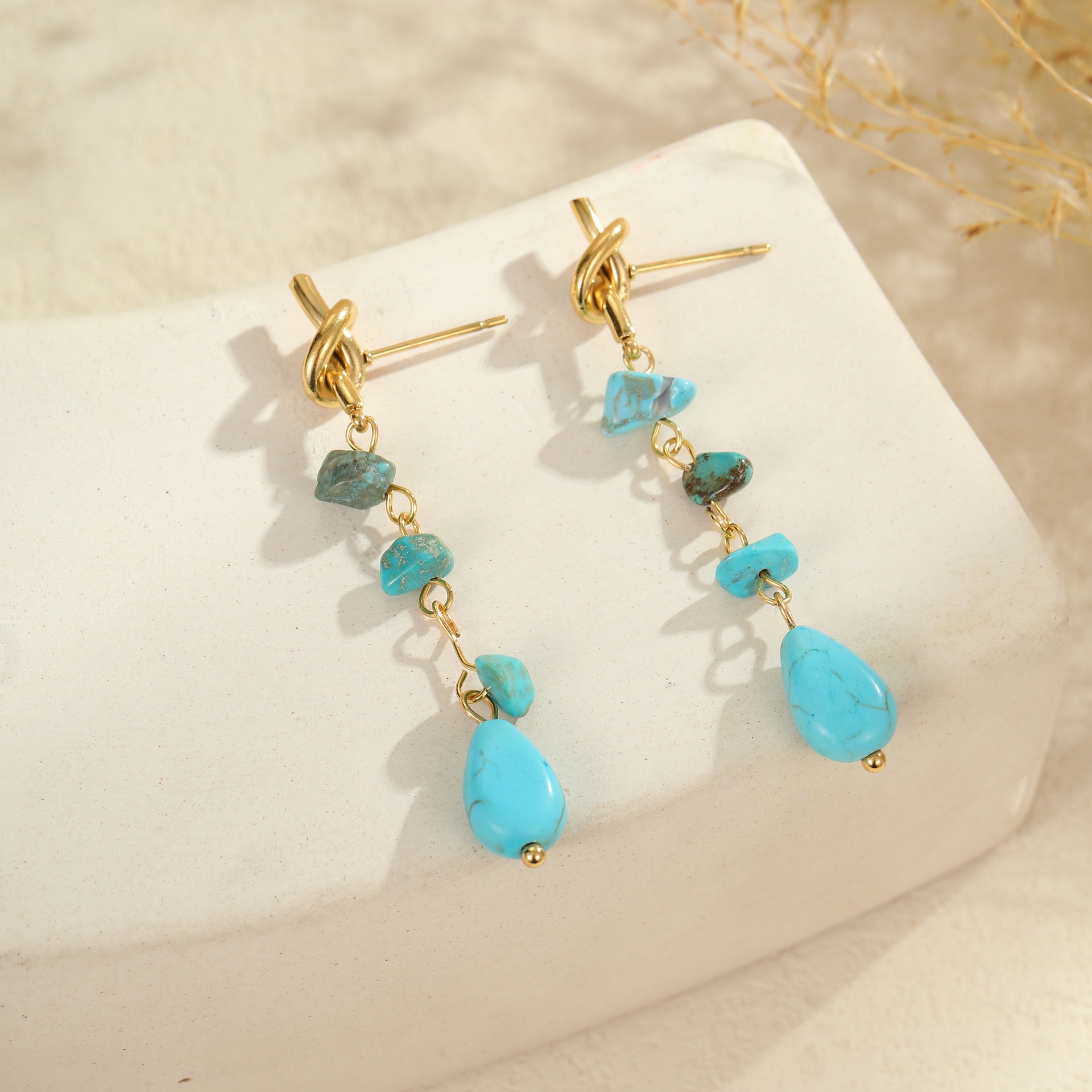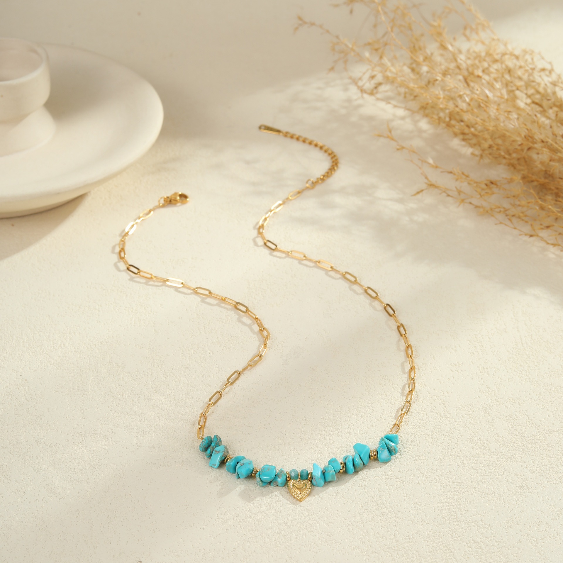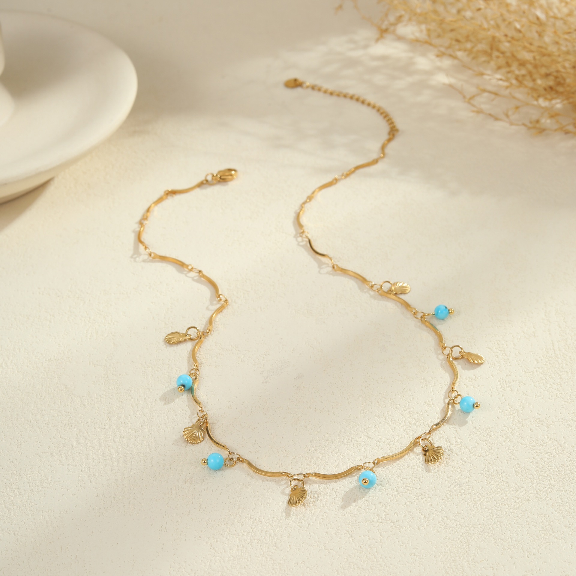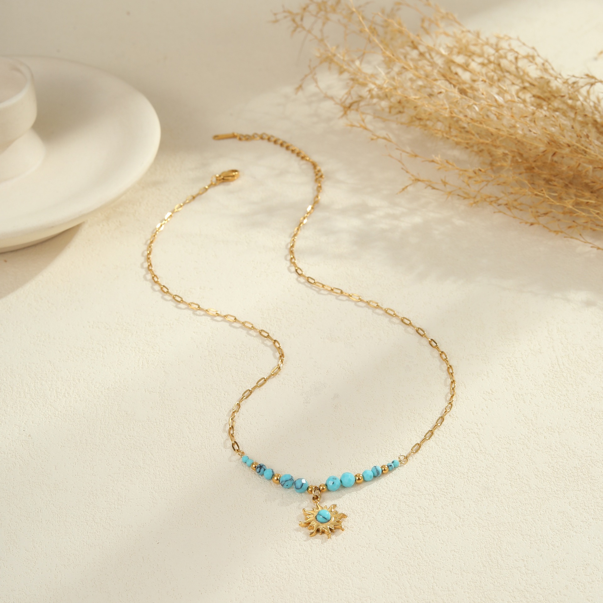 Embrace effortless boho elegance with this turquoise natural stone jewelry set. Featuring a matching necklace, ring, and earrings crafted from premium titanium steel with 18K gold plating, each piece is waterproof, tarnish-free, and designed for lasting beauty. The vibrant turquoise stones bring a fresh, natural touch — perfect for summer styling or everyday wear with a laid-back, chic vibe.