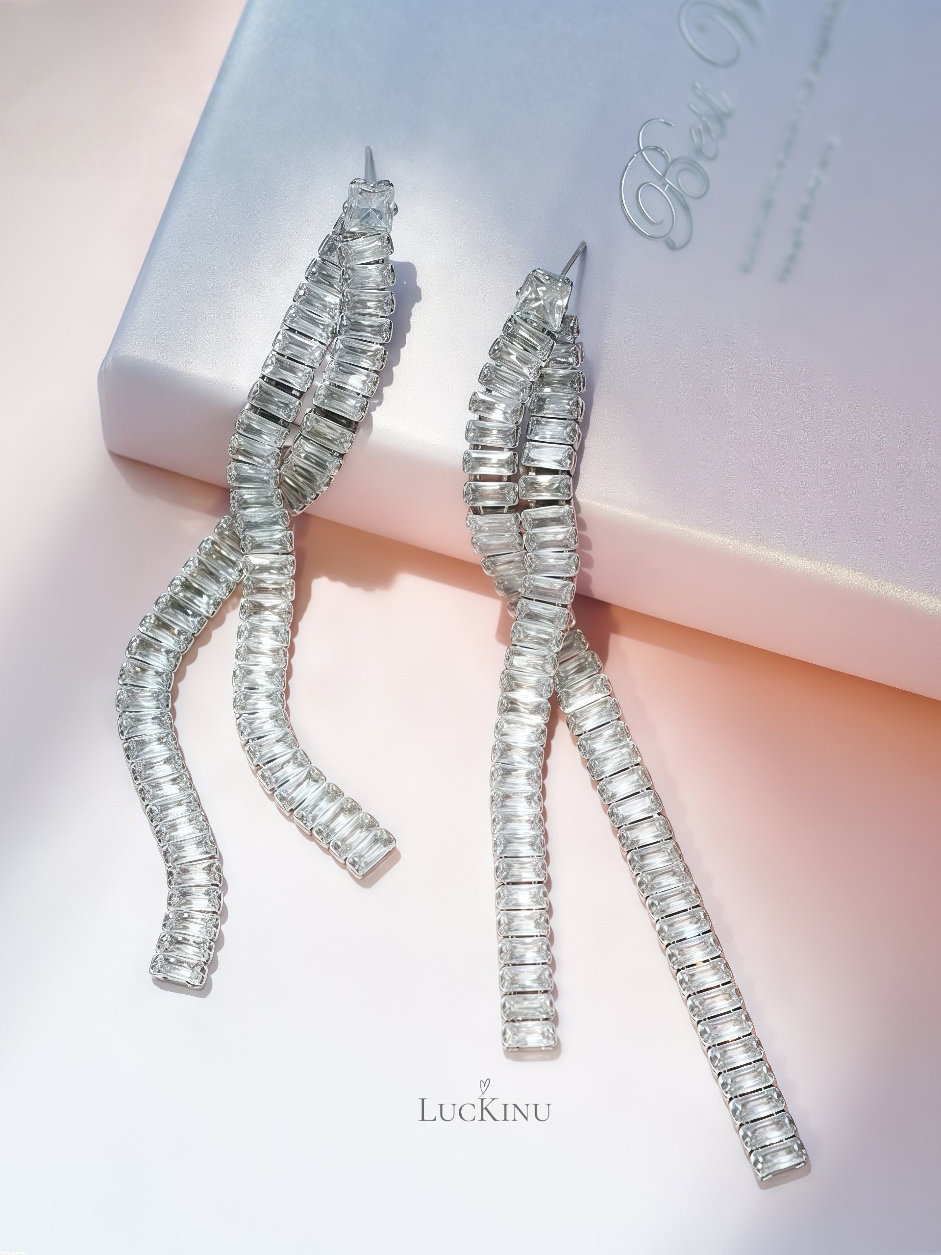 Extra Long Pavé Zircon Tassel Earrings – Rhodium-Plated Luxury Jewelry