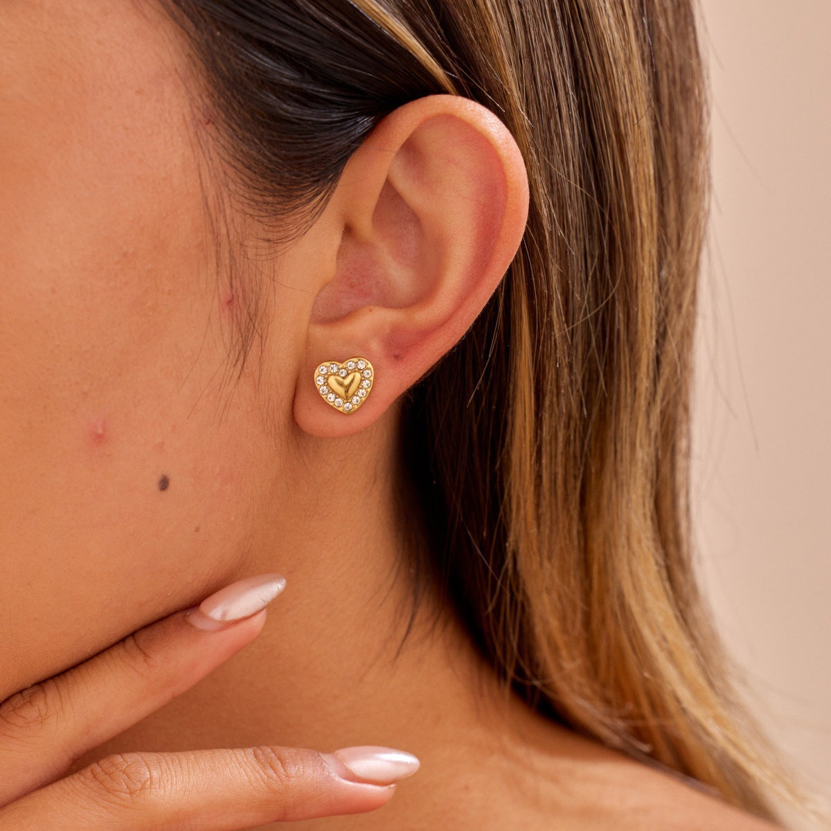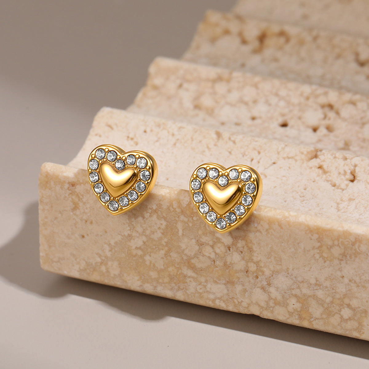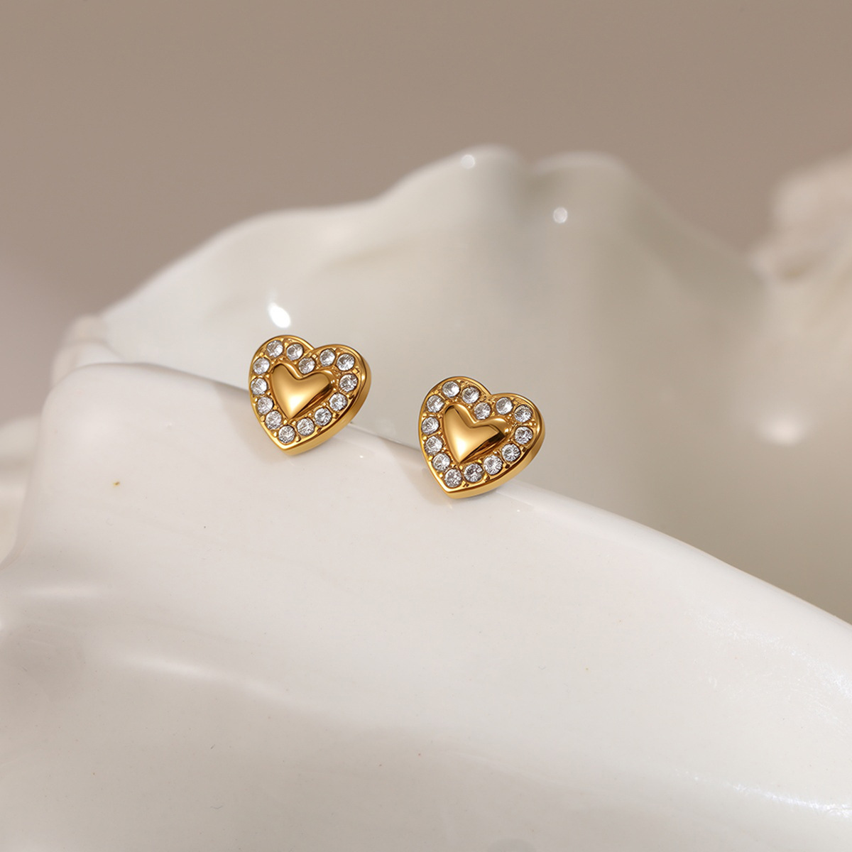 18K Gold Plated Stainless Steel Vintage Heart Stud Earrings – Chic Minimalist Style