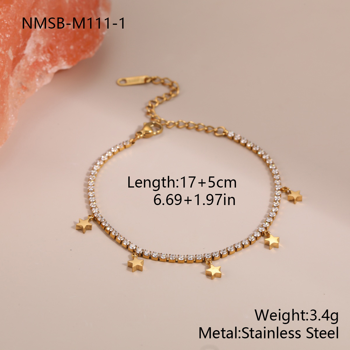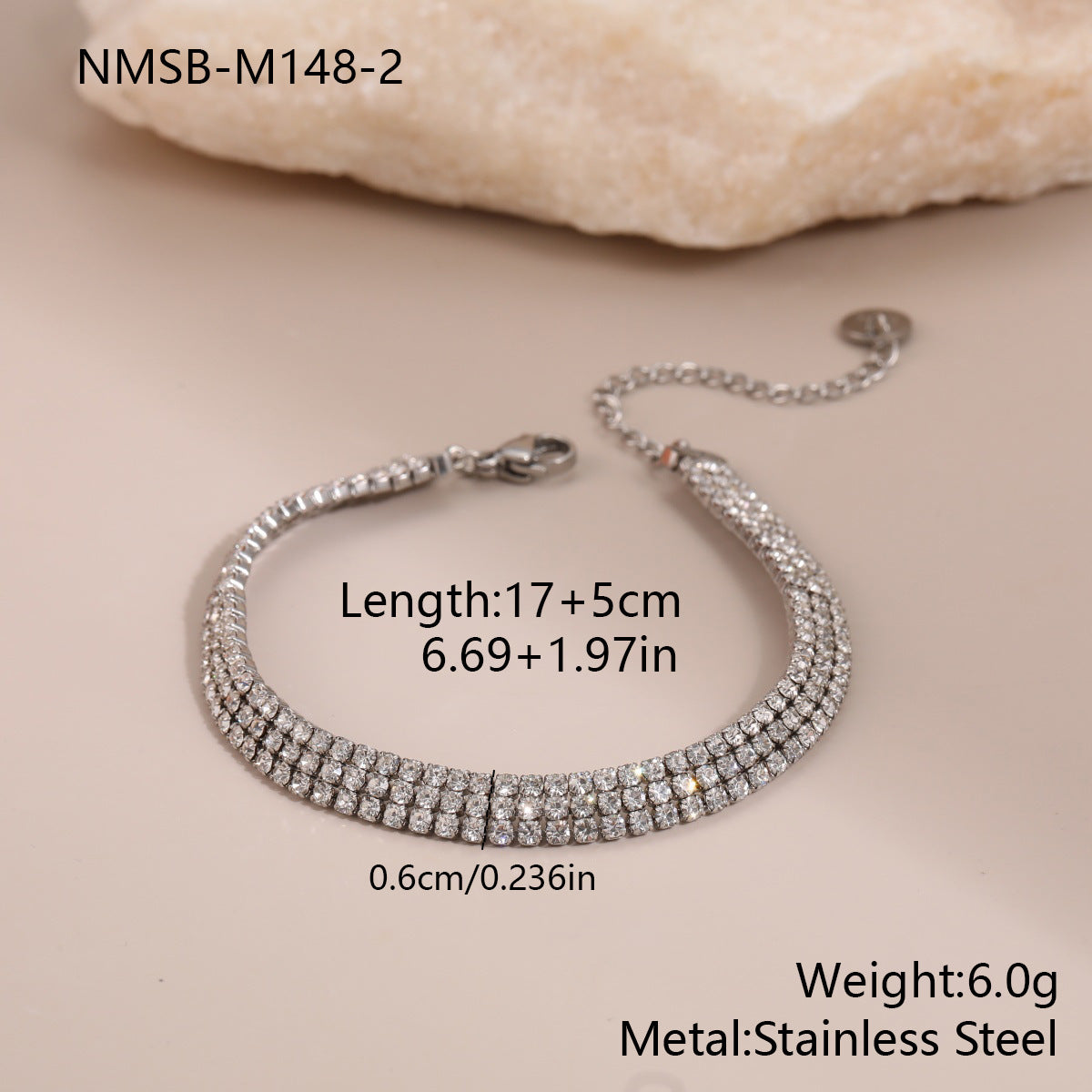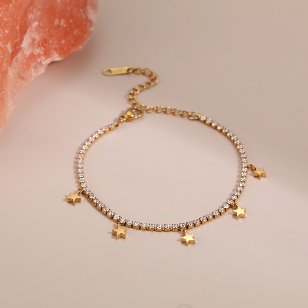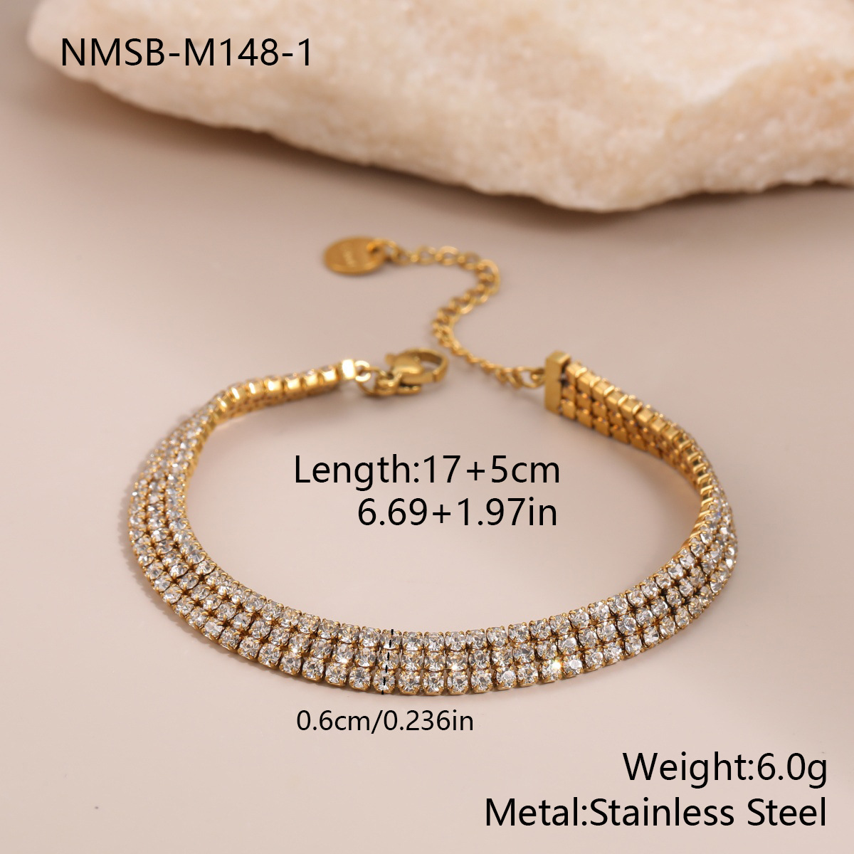 Vintage Pave Crystal Necklace & Bracelet – 18K Gold Plated Stainless Steel Minimalist Jewelry Set