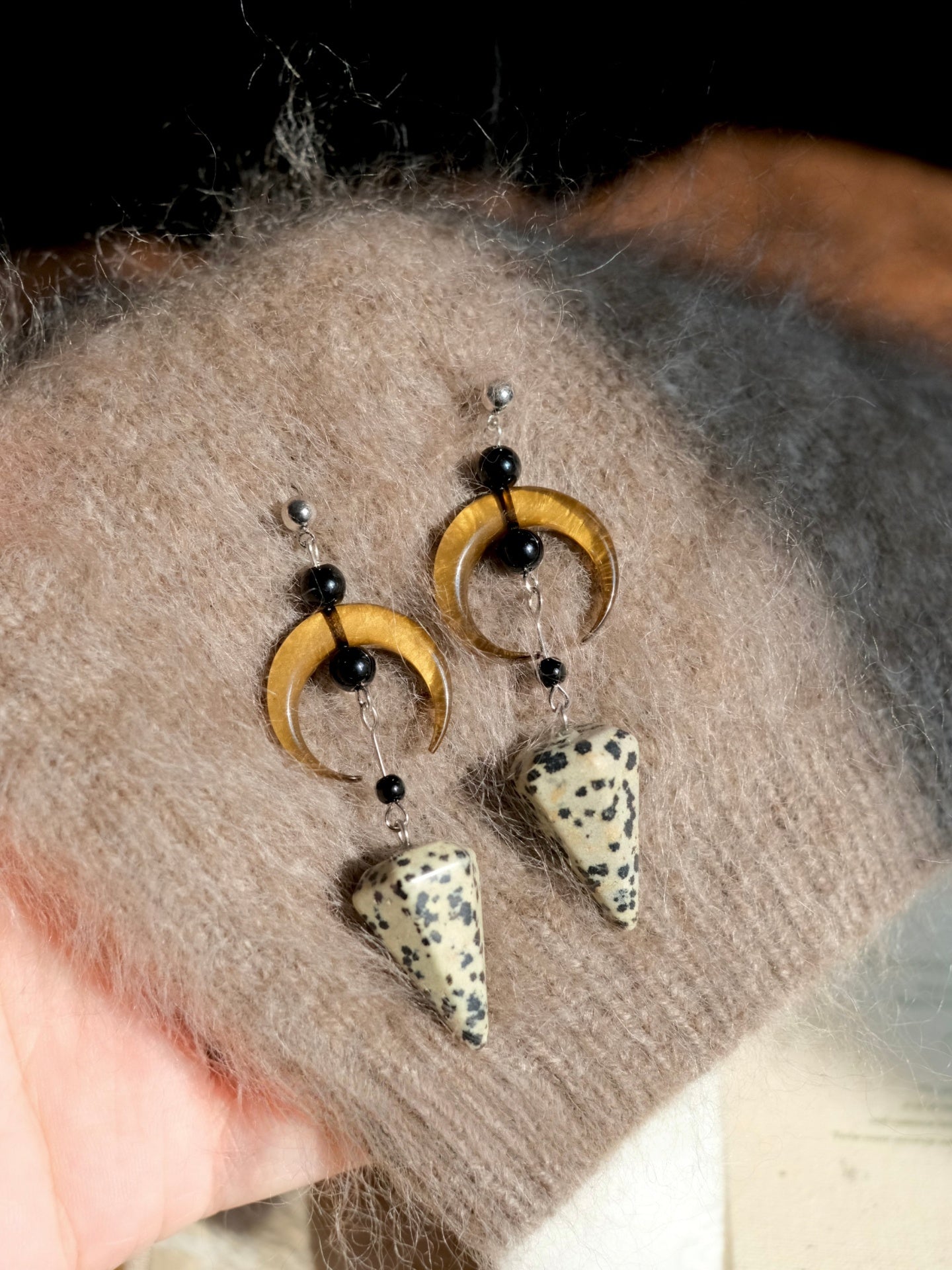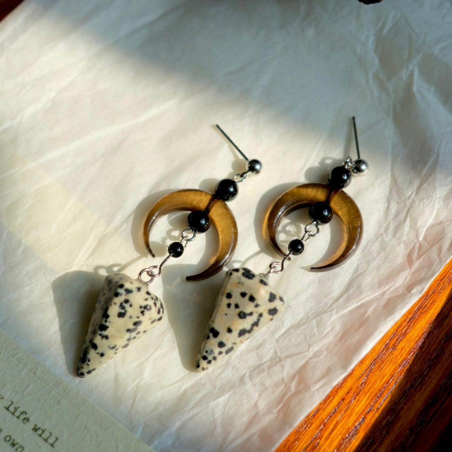 “Waning Moon” Original Minimalist Lunar Spot Stone Earrings — Unique Artistic Statement Earrings for Women