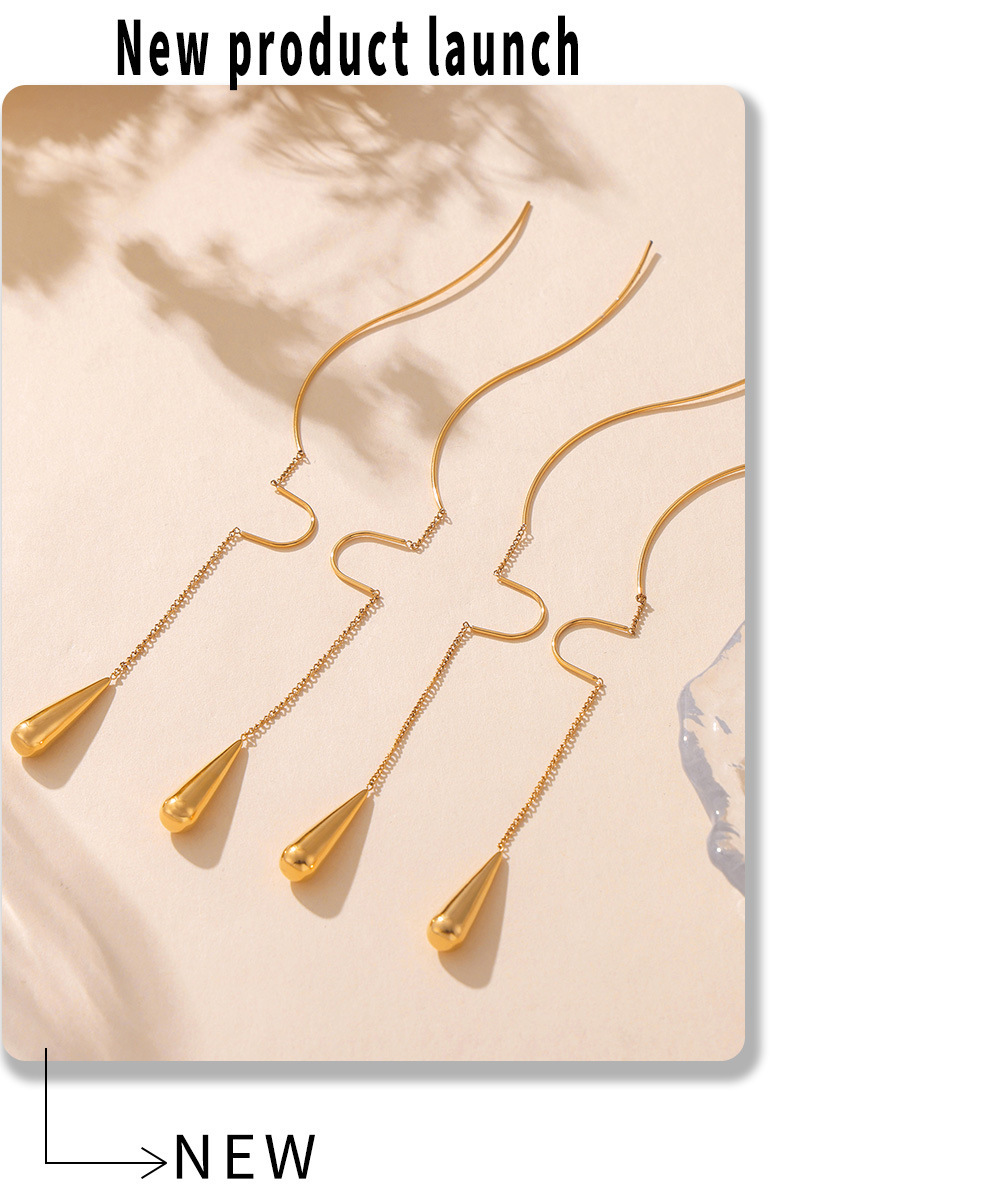 Water Drop Tassel Earrings – Minimalist Luxury Stainless Steel Threader Drops