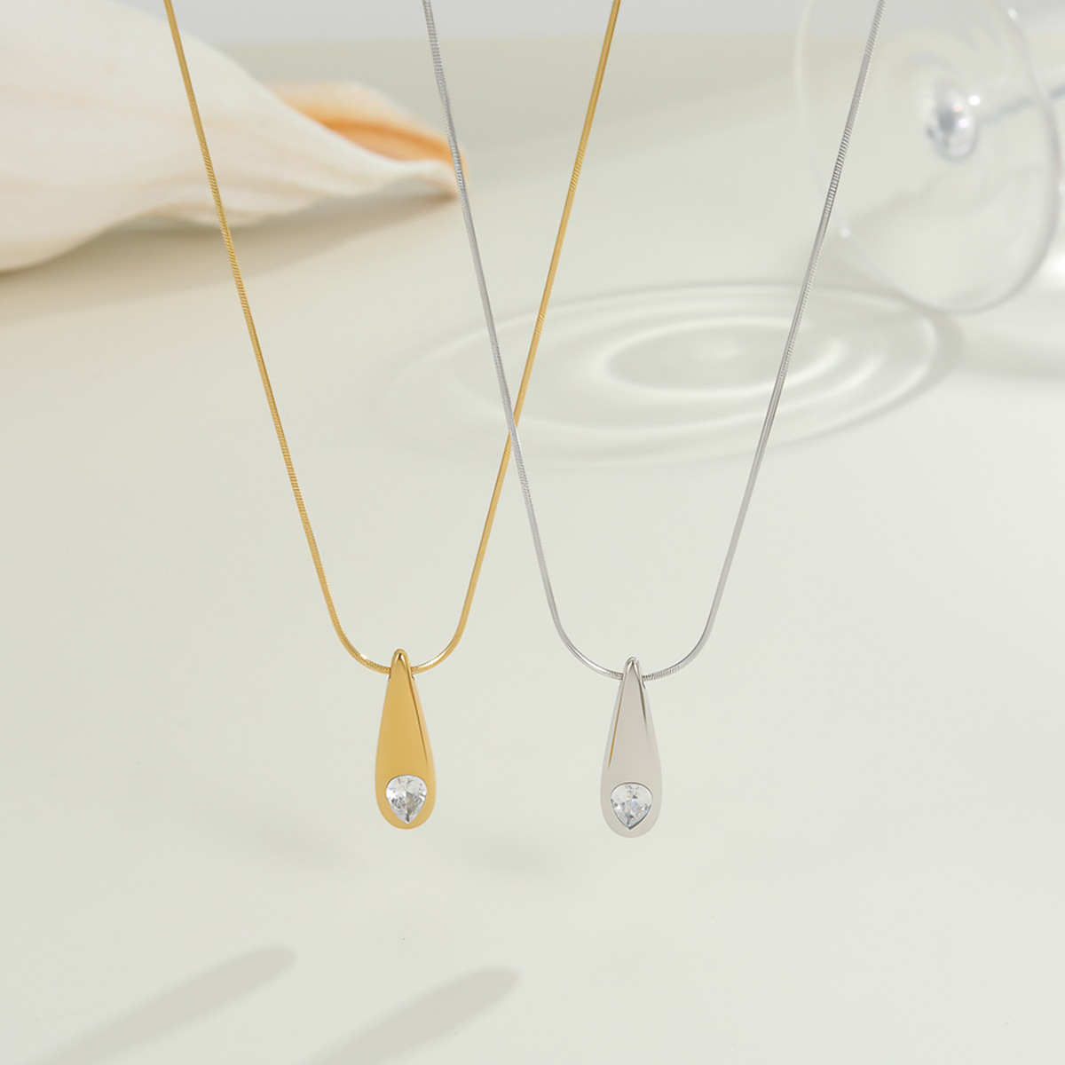 Zircon Waterdrop Pendant Necklace & Stainless Steel Studs – 18K Gold Plated Minimalist Sparkling Jewelry Set